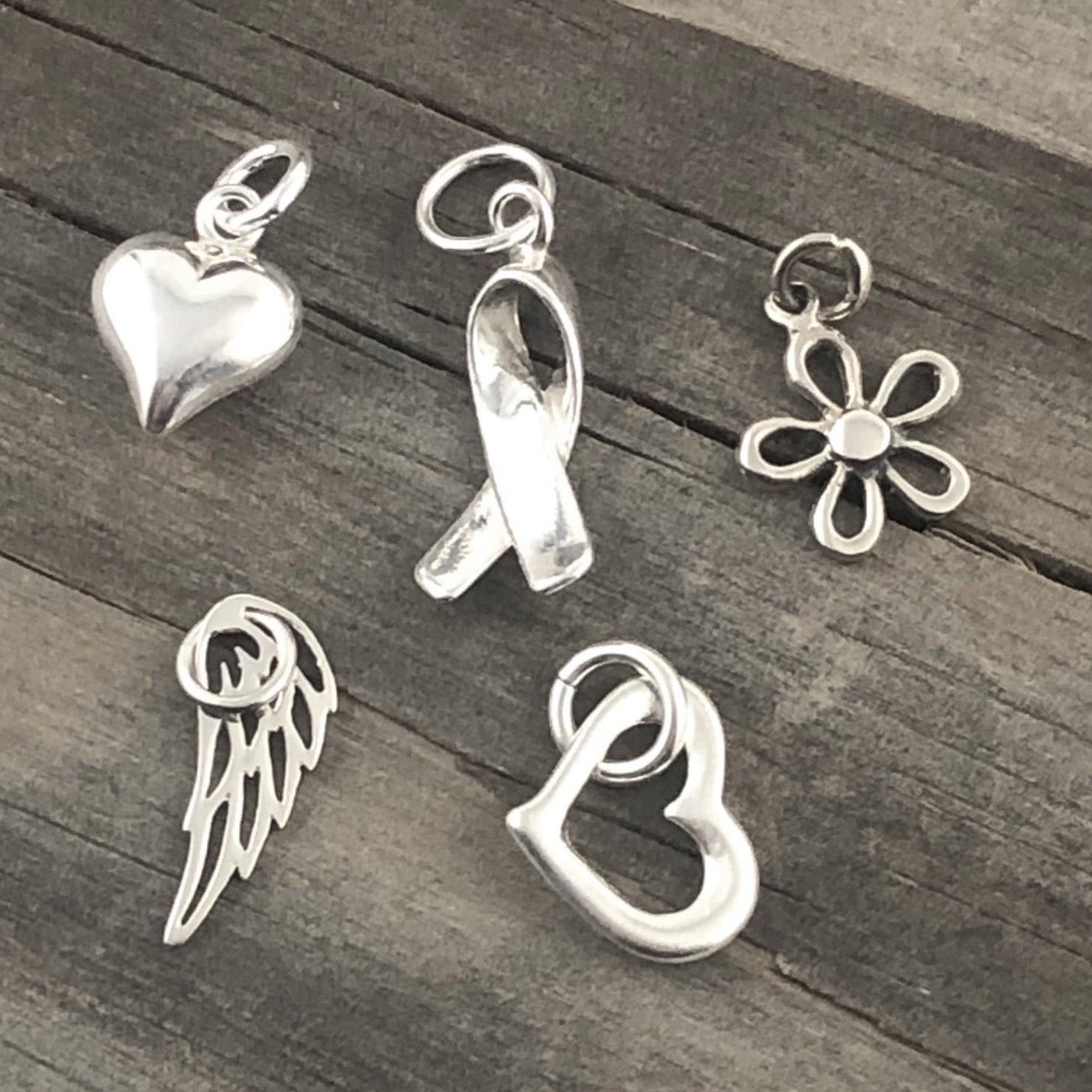 These sterling silver embellishments are a great way to finish off any necklace or bracelet in the Keepsake Collection. Choose from 5 different charm designs. If you are wanting to add them to a necklace, bracelet or keychain that you have in your cart please indicate in the comment section which piece you would like it added to.