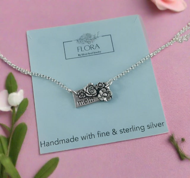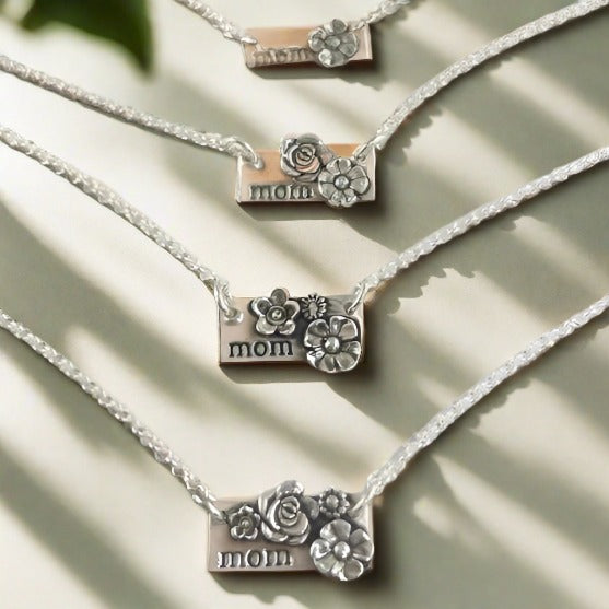 Mom's Flower Garden Necklace features delicate flowers to symbolize each cherished loved one. Crafted from 99.9% fine silver, each necklace is meticulously handmade, ensuring that no two pieces will be exactly alike.