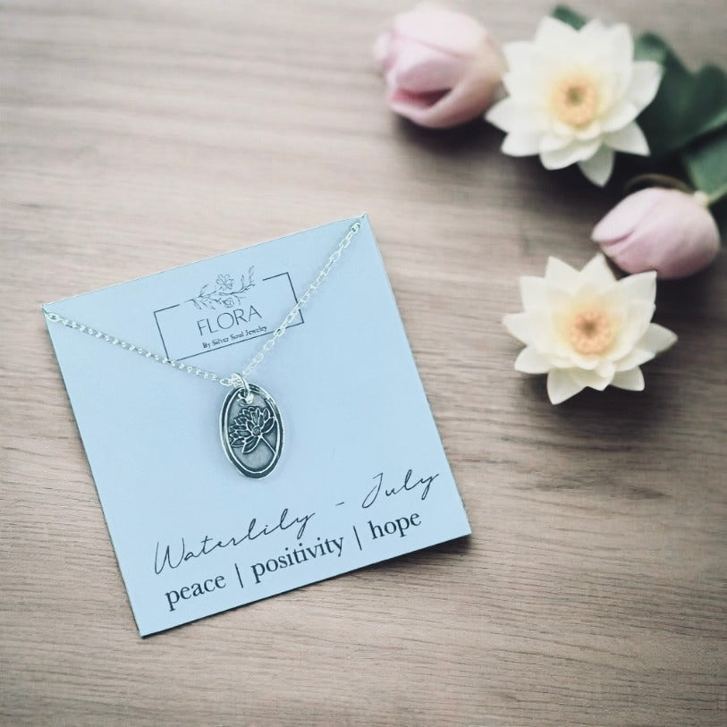 Experience the beauty of my fine silver Waterlily necklace which is specially designed to represent the month of July. Each piece showcases the beauty of the Waterlily while embodying the qualities of peace, positivity & hope.